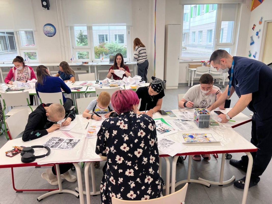 В рамках сотрудничества АНО «Пропомощь+» с ГБОУ Школа №109 «Госпитальная школа «УчимЗнаем», знаниями о японских комиксах Манга наш волонтер-Николай Даниленко поделился с маленькими пациентами НМИЦ онкологии им. Н.Н. Блохина. После интересного рассказа, дети с огромным увлечением самостоятельно рисовали комиксы.